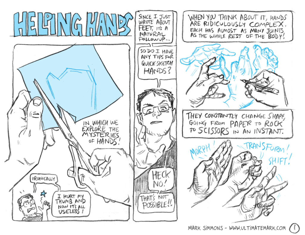 Figure drawing tips, round five. It’s time to discuss hands, and how to cope with the impossibility of quick-sketching the little monsters.