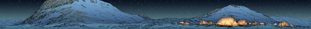 A new version of the Everest graphic novel opera (see below), designed for projection on planetarium domes. In addition to hand-drawn 360° panoramic landscapes, I drew some new figures for the backgrounds.